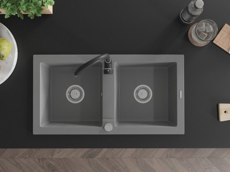 MEXEN/S MEXEN/S – Mario granitový drez 2-bowl vrátane batérie Telma, šedá 6504-71-670200-70