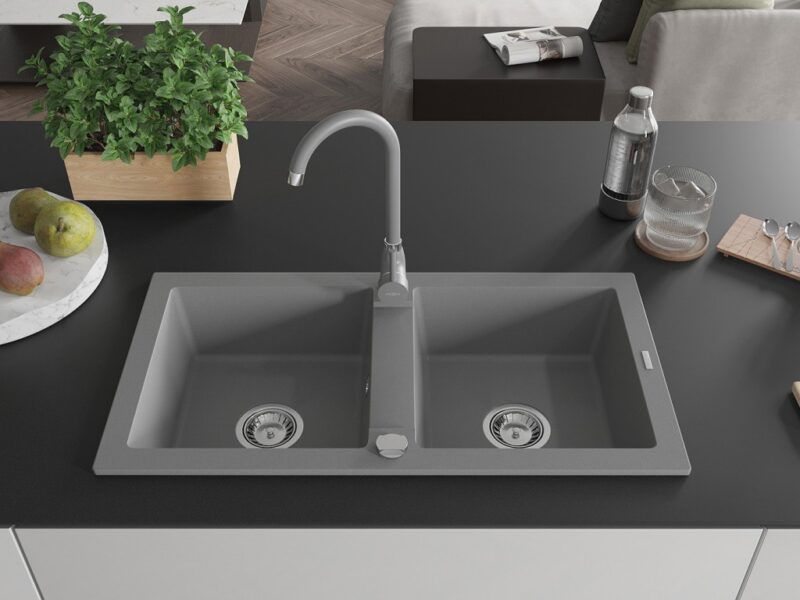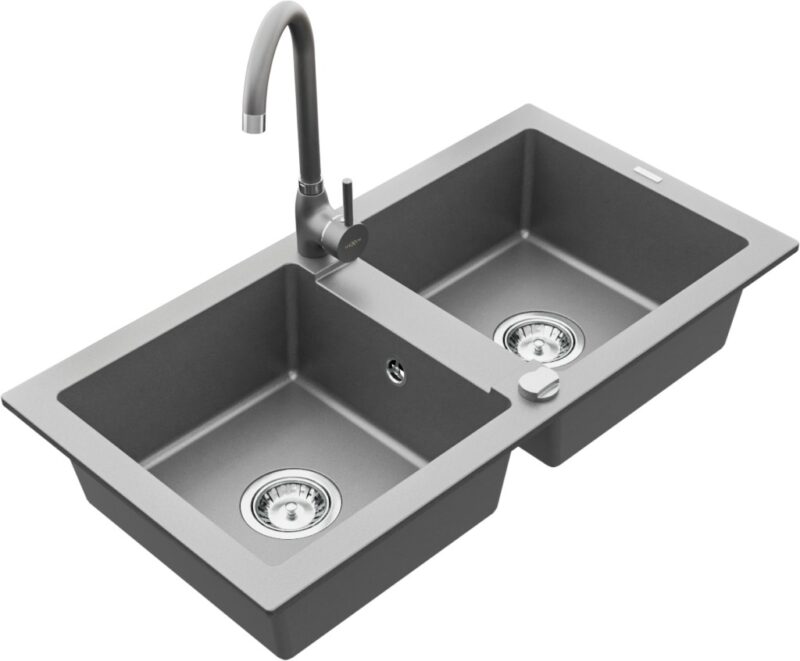 MEXEN/S MEXEN/S – Mario granitový drez 2-bowl vrátane batérie Telma, šedá 6504-71-670200-71