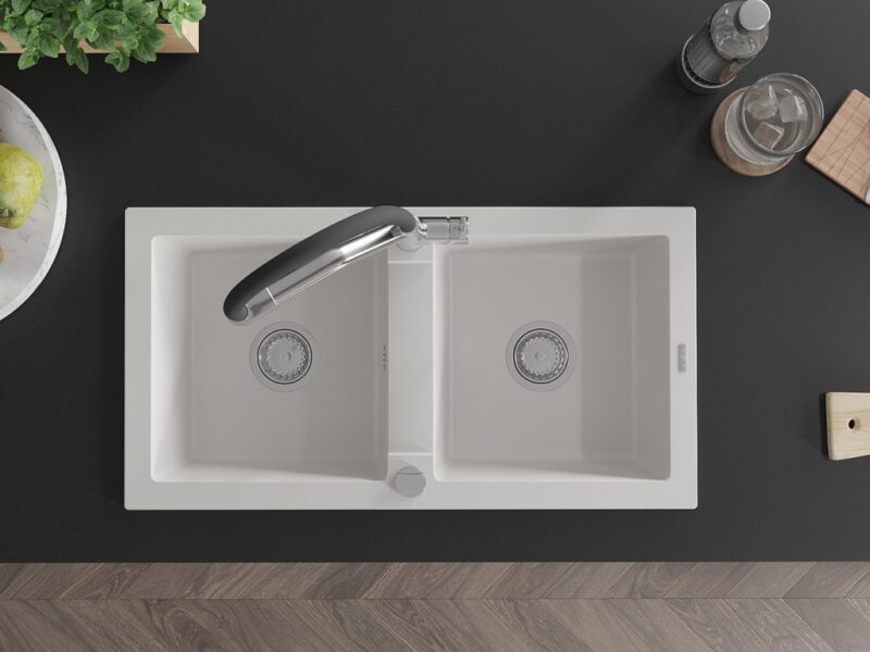 MEXEN/S MEXEN/S – Mario granitový drez 2-bowly vrátane batérie Duo, biela 6504-20-671701-07