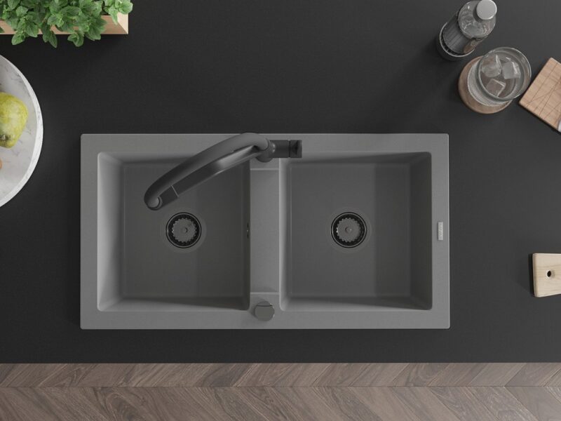 MEXEN/S MEXEN/S – Mario granitový drez 2-bowly vrátane batérie Duo, šedá 6504-71-671701-70-B