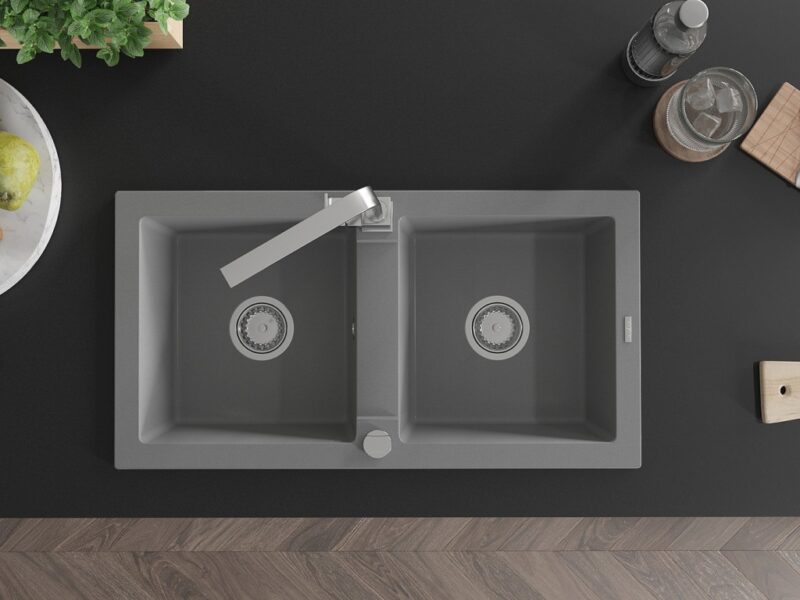 MEXEN/S MEXEN/S – Mario granitový drez 2-bowly vrátane batérie Rita, šedý 6504-71-670300-00
