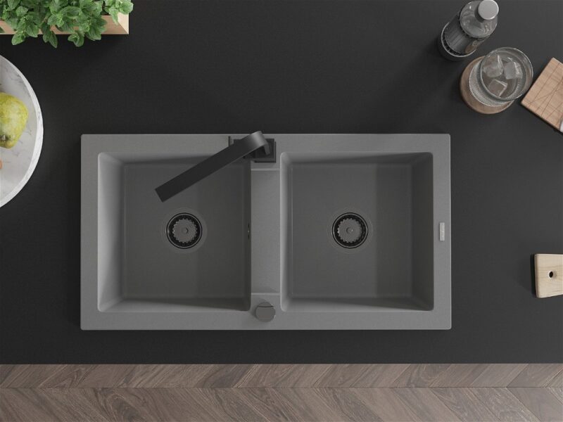 MEXEN/S MEXEN/S – Mario granitový drez 2-bowly vrátane batérie Rita, šedý 6504-71-670300-70-B