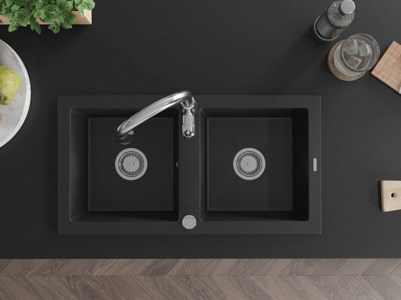 MEXEN/S MEXEN/S – Mario granitový drez 2-bowly vrátane batérie Savita, čierna 6504-77-672601-00