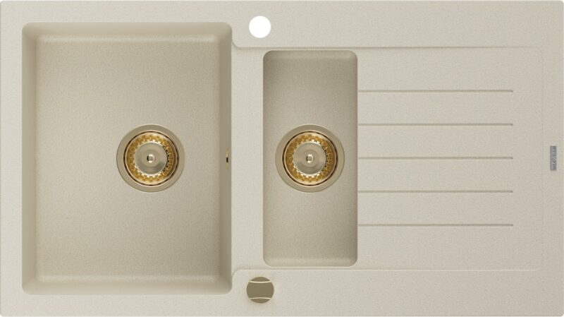 MEXEN/S MEXEN/S – Matias granitový drez 1.5 s odkvapkávačom 900×505 mm, béžová, + zlatý sifón 6502901505-69-G