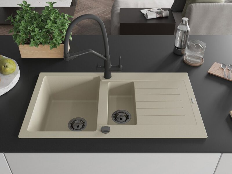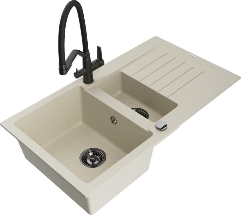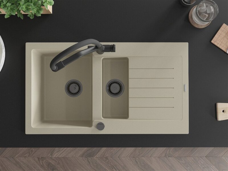 MEXEN/S MEXEN/S – Matias granitový drez 1.5 s odkvapkávačom vrátane batérie Duo, béžová 6502-69-671701-70-B