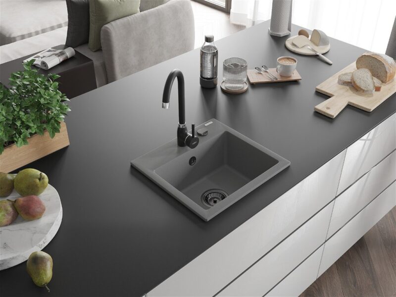 MEXEN/S MEXEN/S – Milo granitový drez 1 435 x 410 mm, sivá, + čierny sifón 6505441000-71-B