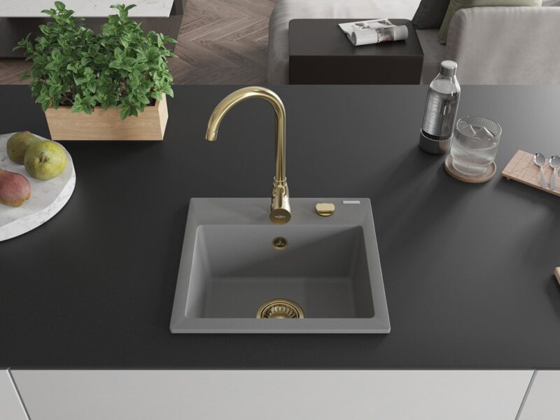 MEXEN/S MEXEN/S – Milo granitový drez 1 435 x 410 mm, sivá, + zlatý sifón 6505441000-71-G