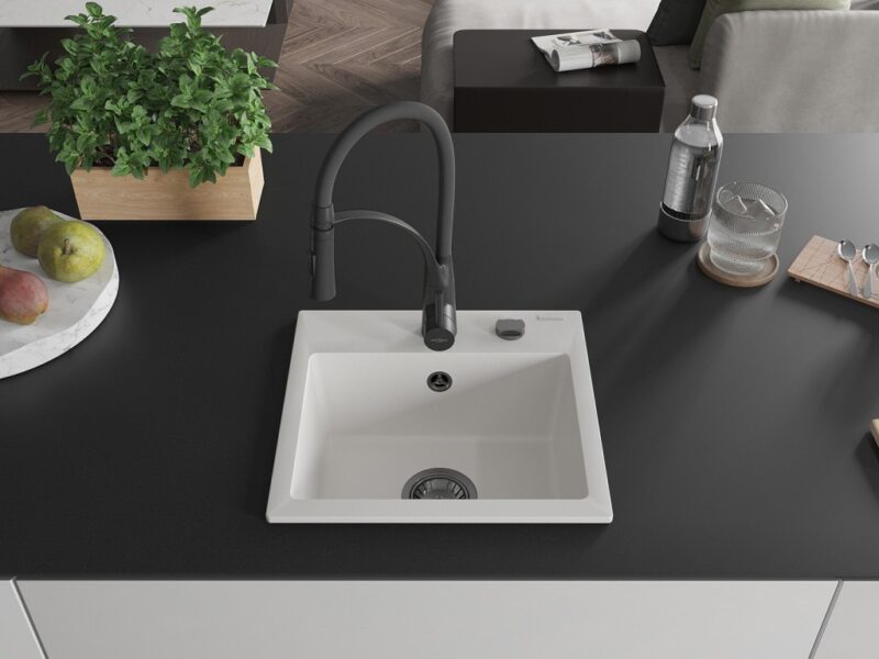 MEXEN/S MEXEN/S – Milo granitový drez 1-miska vrátane batérie Aster, biela 6505-20-73450-70-B