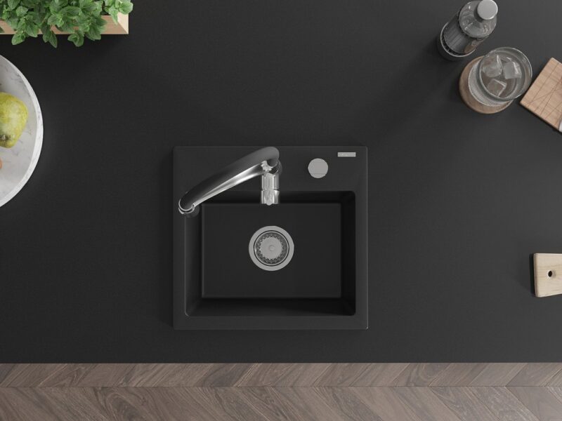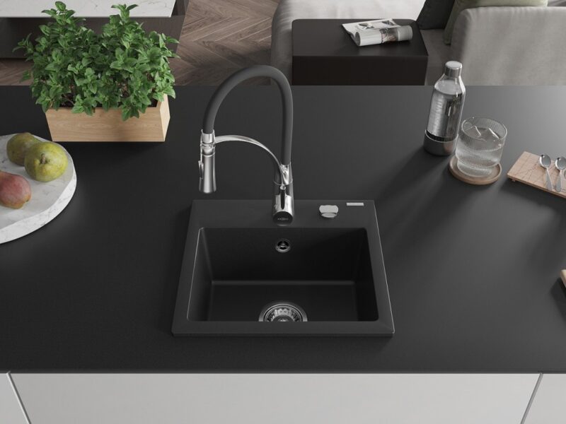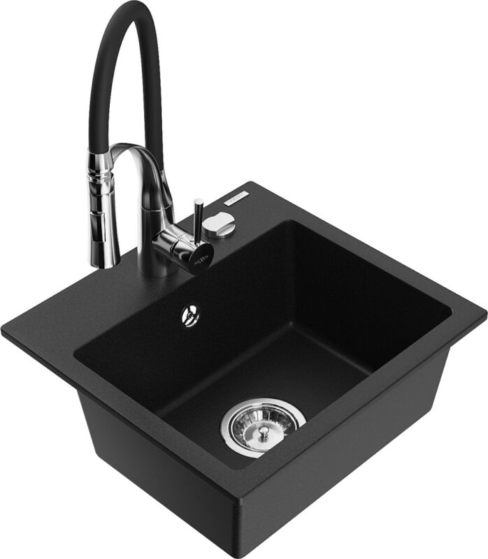 MEXEN/S MEXEN/S – Milo granitový drez 1-miska vrátane batérie Aster, čierna 6505-77-73450-07