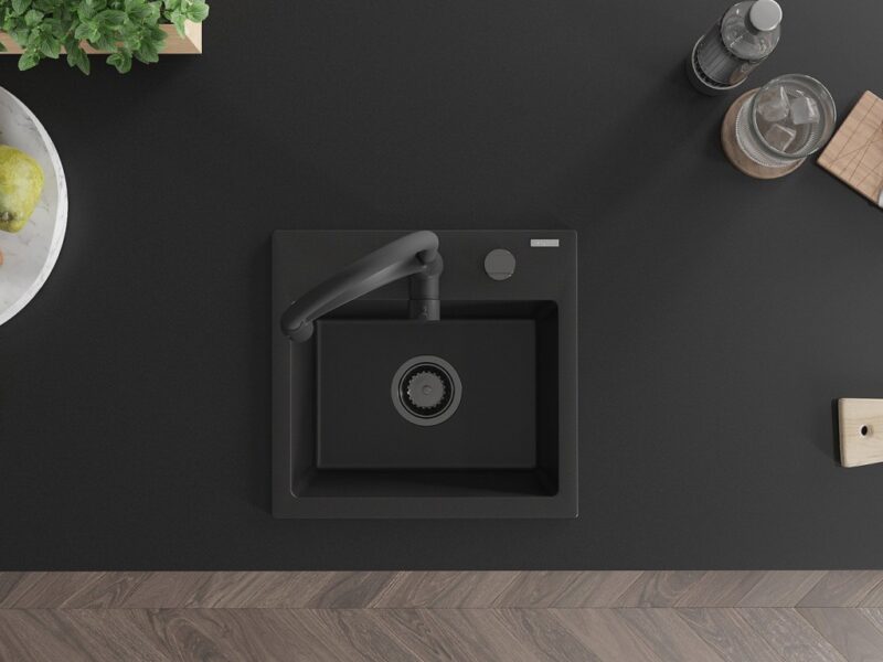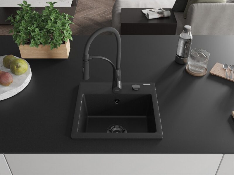 MEXEN/S MEXEN/S – Milo granitový drez 1-miska vrátane batérie Aster, čierna 6505-77-73450-70-B