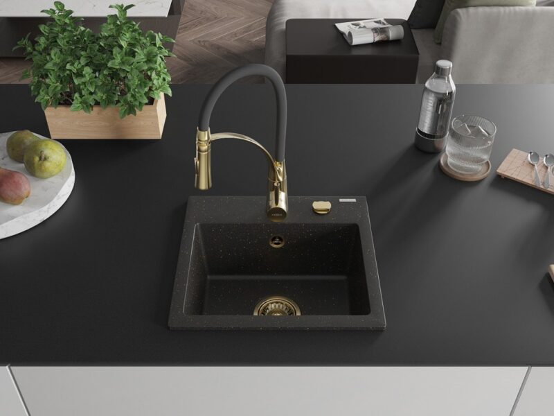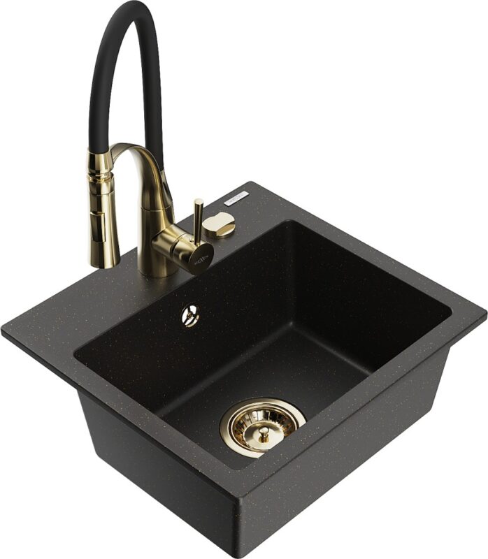 MEXEN/S MEXEN/S – Milo granitový drez 1-miska vrátane batérie Aster, čierna/zlatá metalik 6505-75-73450-57-G