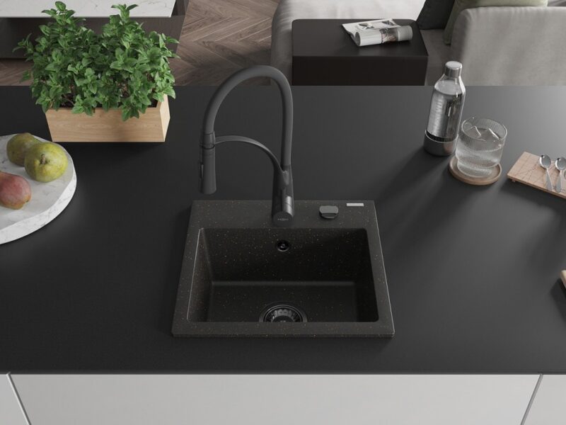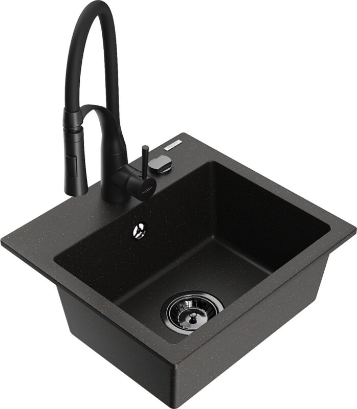 MEXEN/S MEXEN/S – Milo granitový drez 1-miska vrátane batérie Aster, čierna/zlatá metalik 6505-75-73450-70-B