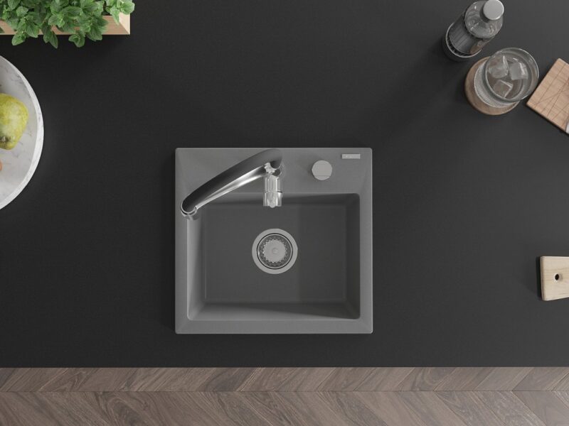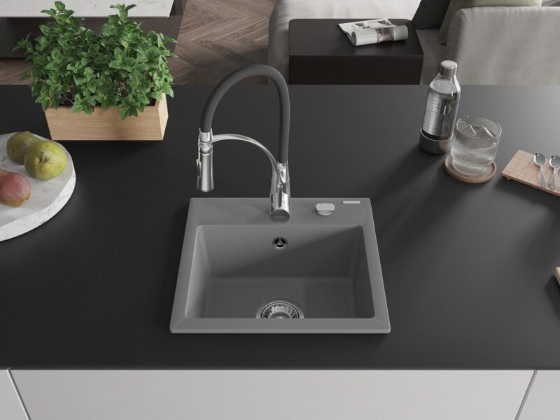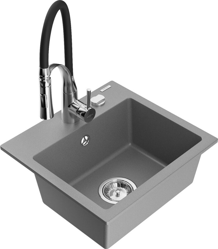 MEXEN/S MEXEN/S – Milo granitový drez 1-miska vrátane batérie Aster, šedá 6505-71-73450-07