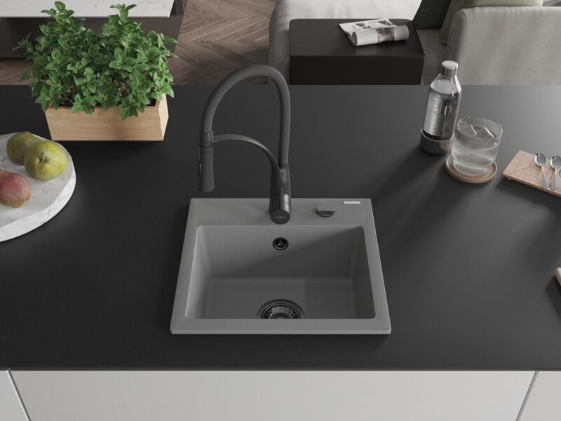 MEXEN/S MEXEN/S – Milo granitový drez 1-miska vrátane batérie Aster, šedá 6505-71-73450-70-B