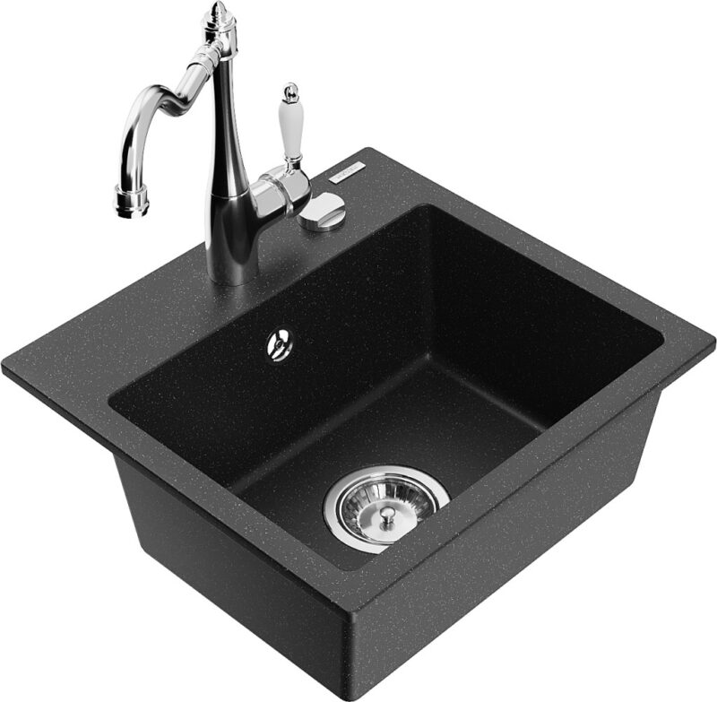 MEXEN/S MEXEN/S – Milo granitový drez 1-miska vrátane batérie Carla, čierna/strieborná metalík 6505-73-670700-00