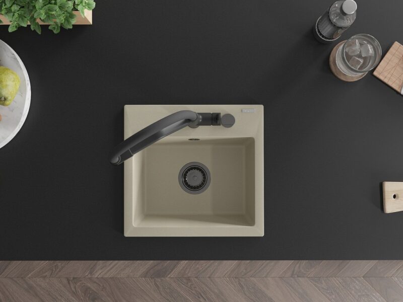 MEXEN/S MEXEN/S – Milo granitový drez 1-miska vrátane batérie Duo, béžová 6505-69-671701-70-B