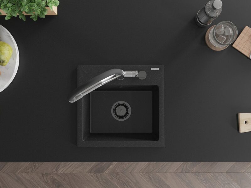MEXEN/S MEXEN/S – Milo granitový drez 1-miska vrátane batérie Duo, čierna/strieborná metalík 6505-73-671701-07-B