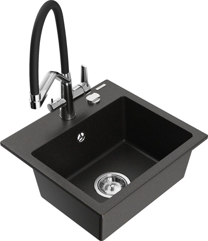 MEXEN/S MEXEN/S – Milo granitový drez 1-miska vrátane batérie Duo, čierna/zlatá metalik 6505-75-671701-07