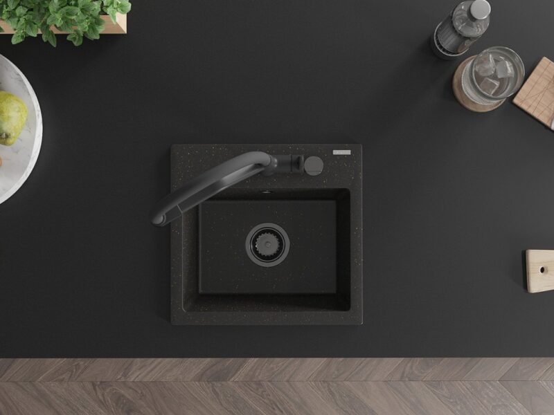 MEXEN/S MEXEN/S – Milo granitový drez 1-miska vrátane batérie Duo, čierna/zlatá metalik 6505-75-671701-70-B