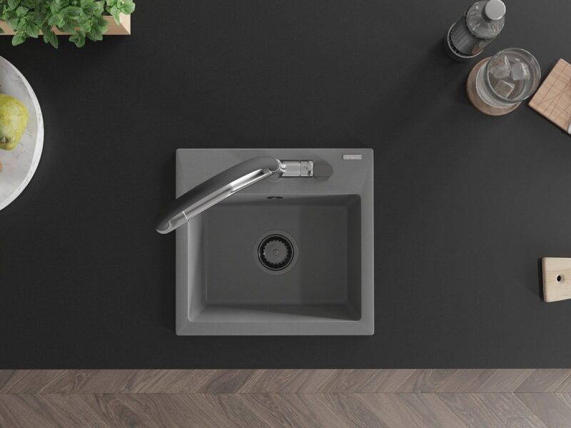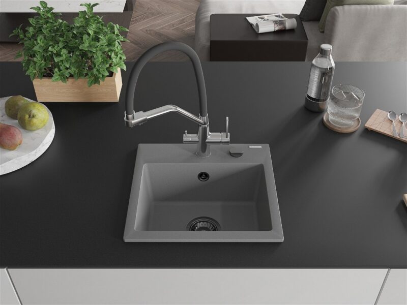 MEXEN/S MEXEN/S – Milo granitový drez 1-miska vrátane batérie Duo, šedá 6505-71-671701-07-B