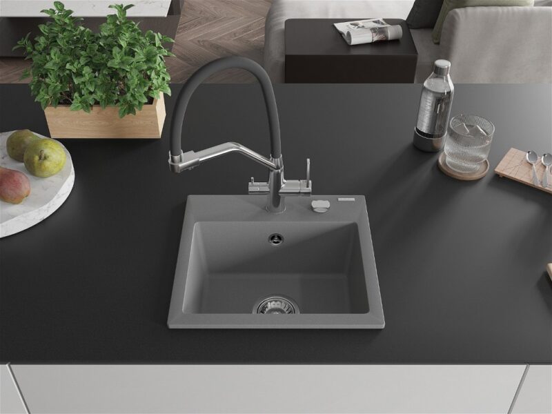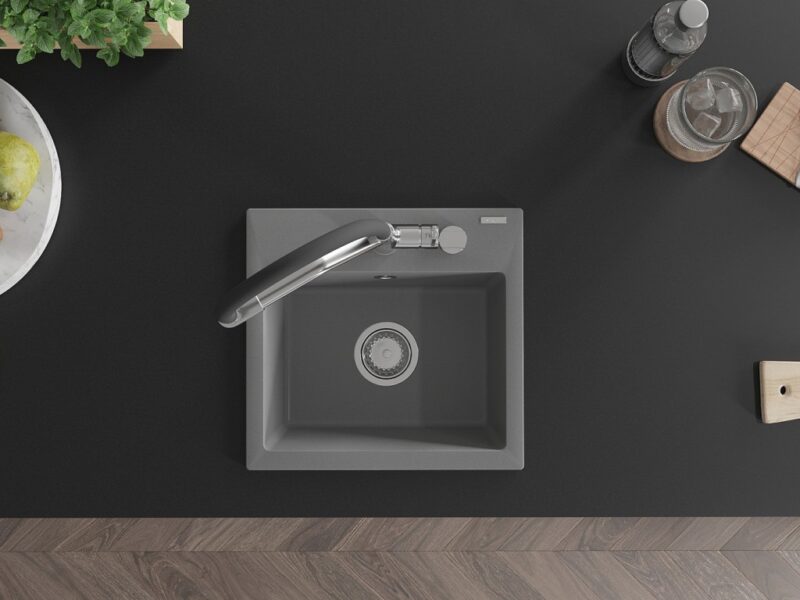 MEXEN/S MEXEN/S – Milo granitový drez 1-miska vrátane batérie Duo, šedá 6505-71-671701-07