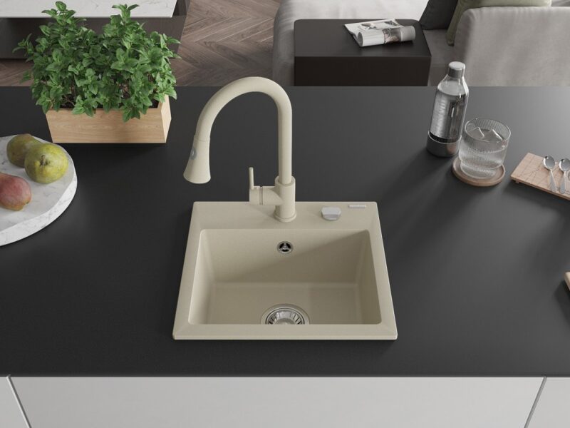 MEXEN/S MEXEN/S – Milo granitový drez 1-miska vrátane batérie Elia, béžová 6505-69-670101-69