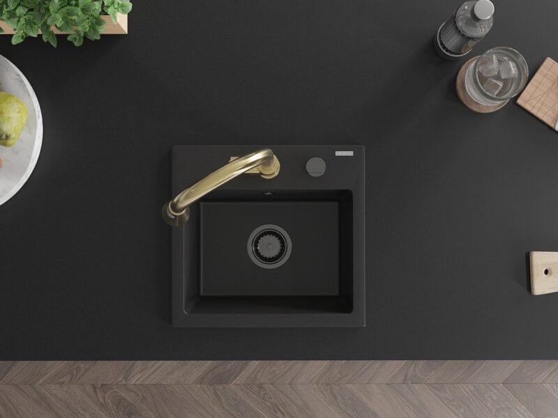 MEXEN/S MEXEN/S – Milo granitový drez 1-miska vrátane batérie Elia, čierna 6505-77-670101-50-B