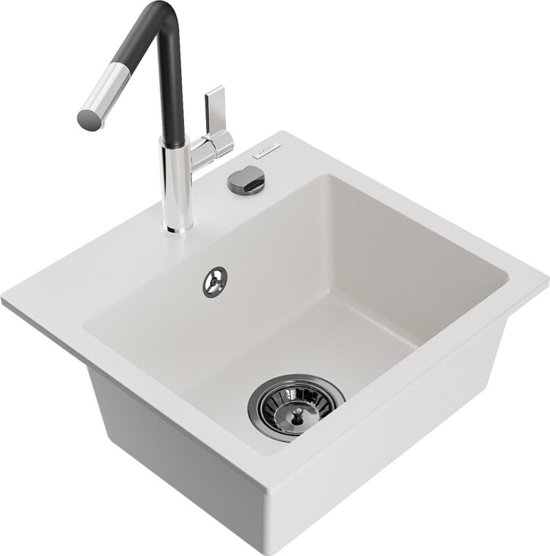 MEXEN/S MEXEN/S – Milo granitový drez 1-miska vrátane batérie Flora, biela 6505-20-670401-07-B