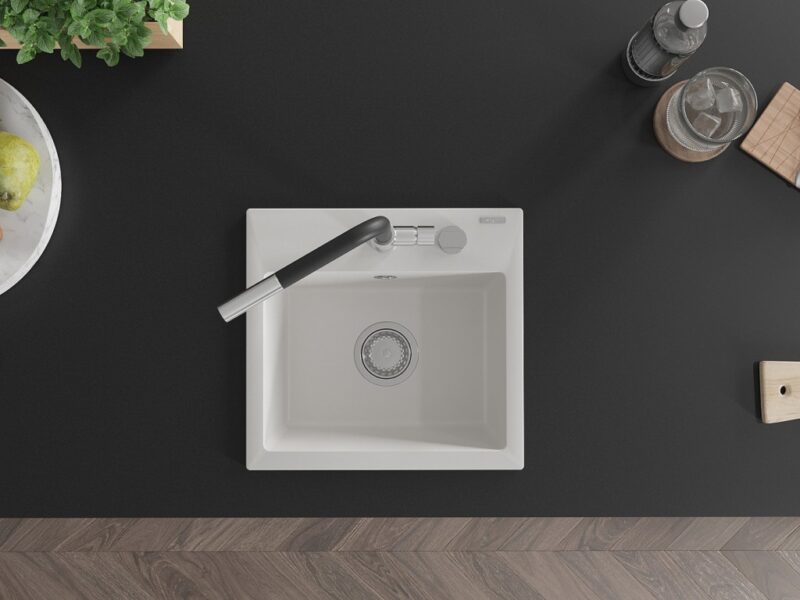 Technické dáta: drez: Rozmer: 435x410x171mm Hĺbka komory: 161 mm Rozmery komory: 375×280 mm Priemer odtoku: ø90 mm Typ: 1-komorový Typ: Zapustené do pracovnej dosky biela farba Povrchová úprava sifónu: Chrome Materiál: žula (80% žulové kamenivo, 20% živice) Prepadový otvor: Áno Otvory: (batérie, automatické) 2 Vysoká odolnosť proti poškriabaniu a zmene farby Odolnosť proti tepelným šokom Ľahko čistiteľný povrch Jeden dodatočný vyfrézovaný otvor na samodierovanie ø35 kuchynská batéria: Materiál: mosadz Farba: chróm/čierna Hlava: Keramická Prevzdušňovač: Áno Typ: Jedna páka Rozsah výtoku: 245 mm Výška batérie: 307 mm(GT) Ean: 5905315057983