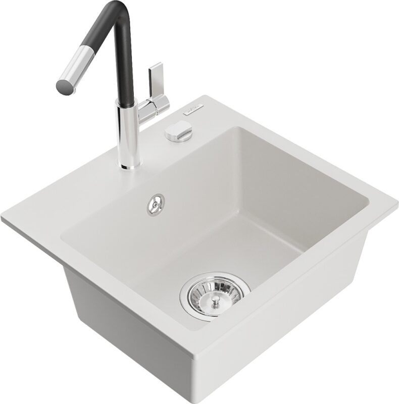 MEXEN/S MEXEN/S – Milo granitový drez 1-miska vrátane batérie Flora, biela 6505-20-670401-07