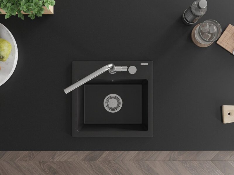 MEXEN/S MEXEN/S – Milo granitový drez 1-miska vrátane batérie Flora, čierna 6505-77-670401-00