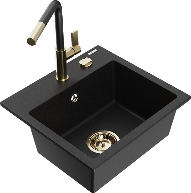 MEXEN/S MEXEN/S – Milo granitový drez 1-miska vrátane batérie Flora, čierna 6505-77-670401-57-G