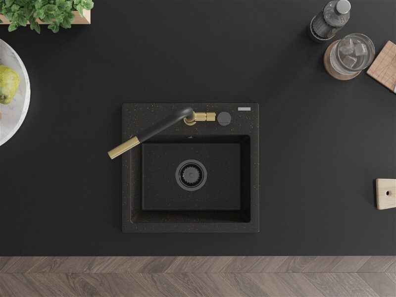 MEXEN/S MEXEN/S – Milo granitový drez 1-miska vrátane batérie Flora, čierna/zlatá metalik 6505-75-670401-57-B