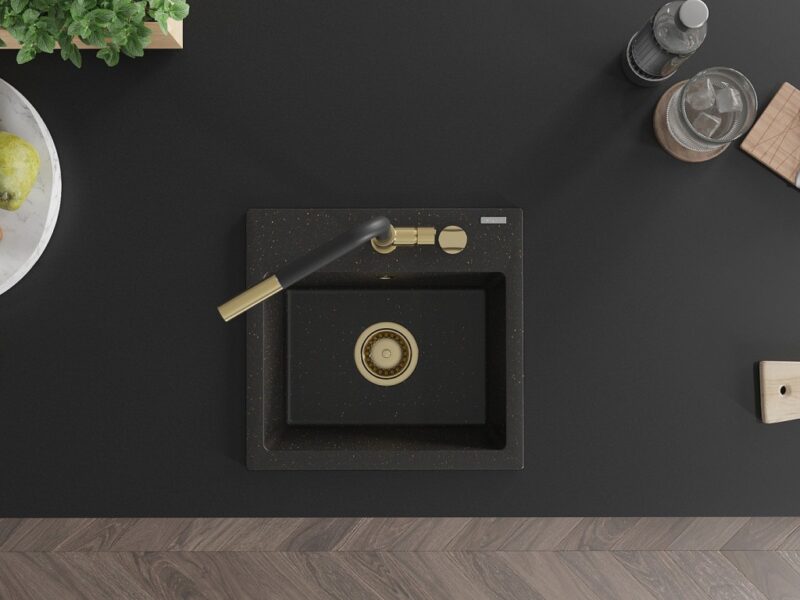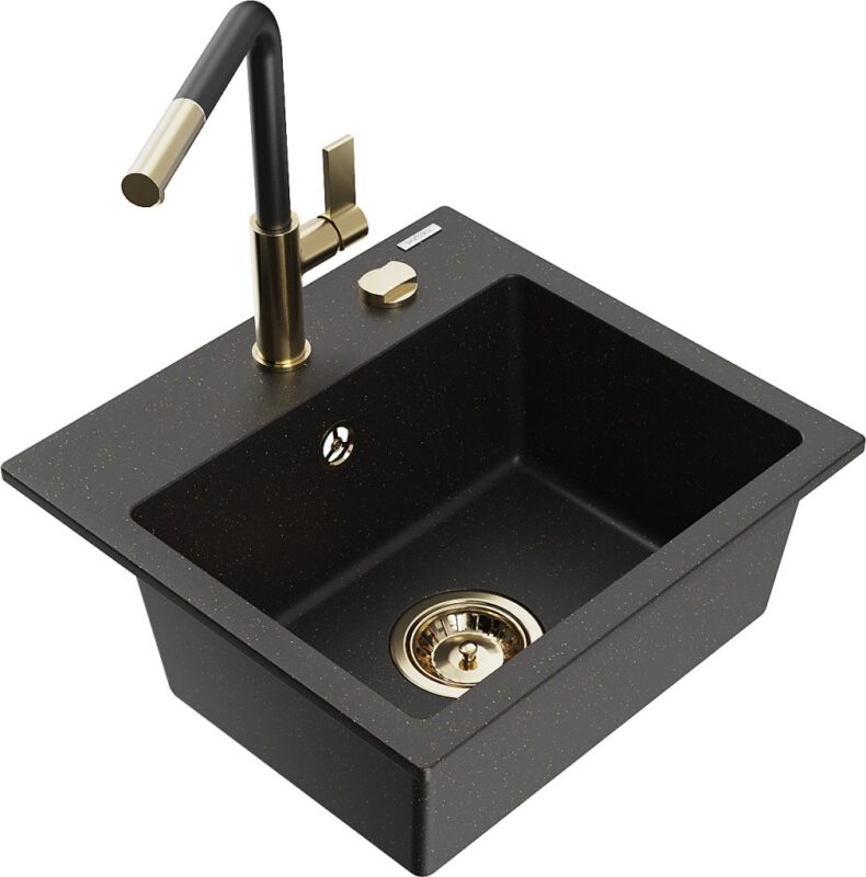MEXEN/S MEXEN/S – Milo granitový drez 1-miska vrátane batérie Flora, čierna/zlatá metalik 6505-75-670401-57-G