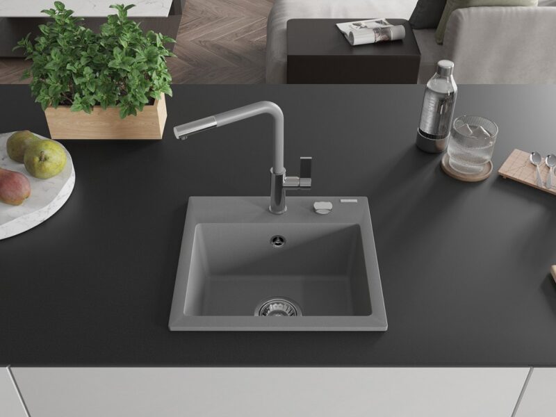 MEXEN/S MEXEN/S – Milo granitový drez 1-miska vrátane batérie Flora, šedá 6505-71-670401-06