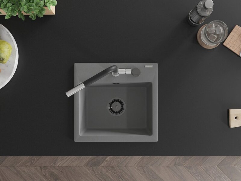 MEXEN/S MEXEN/S – Milo granitový drez 1-miska vrátane batérie Flora, šedá 6505-71-670401-07-B