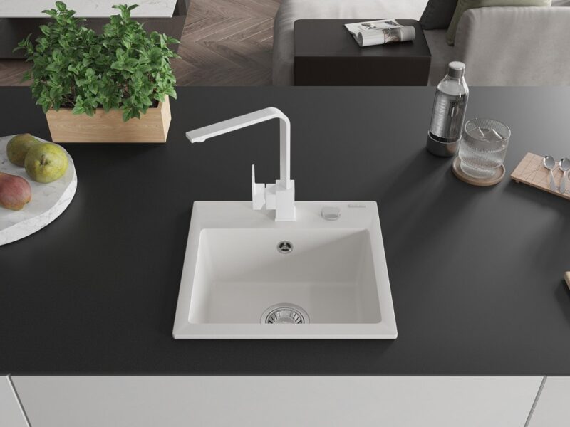 MEXEN/S MEXEN/S – Milo granitový drez 1-miska vrátane batérie Rita, biela 6505-20-670300-20