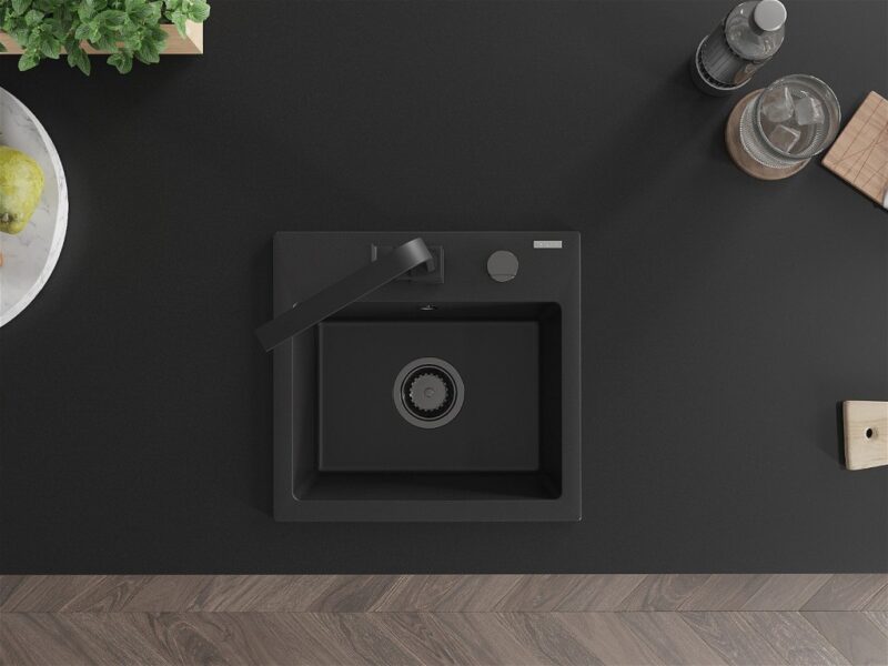 MEXEN/S MEXEN/S – Milo granitový drez 1-miska vrátane batérie Rita, čierny 6505-77-670300-70-B
