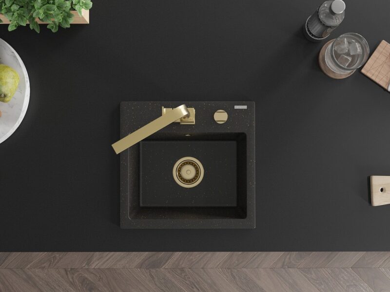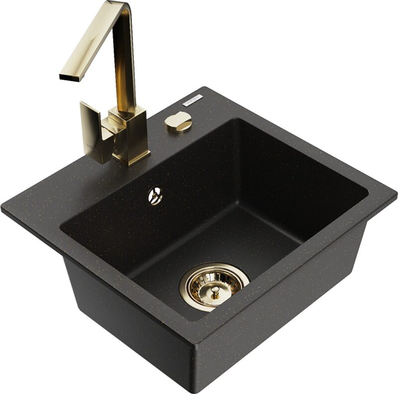 MEXEN/S MEXEN/S – Milo granitový drez 1-miska vrátane batérie Rita, čierny/zlatý metalik 6505-75-670300-50