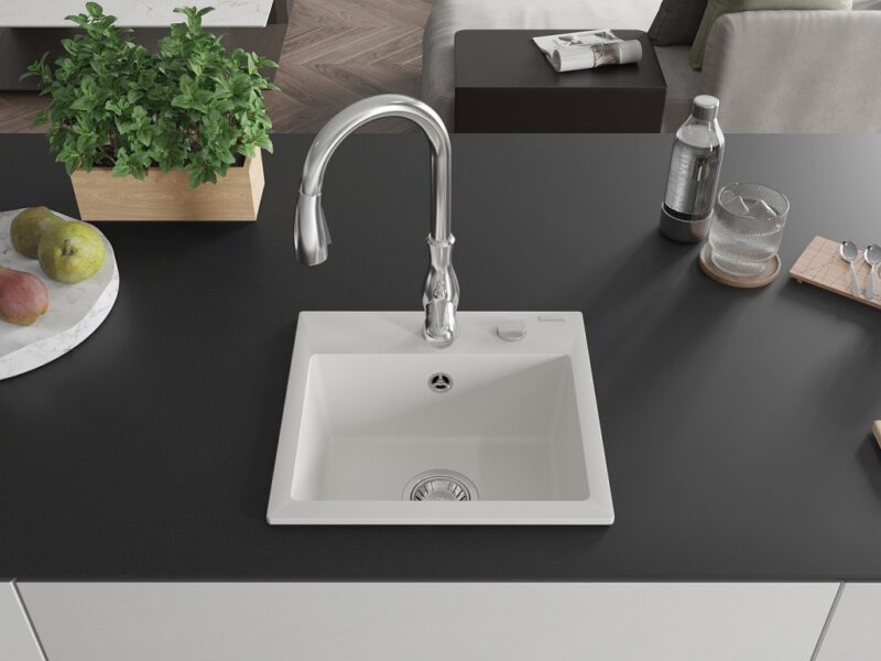Technické dáta: drez: Rozmer: 435x410x171mm Hĺbka komory: 161 mm Rozmery komory: 375×280 mm Priemer odtoku: ø90 mm Typ: 1-komorový Typ: Zapustené do pracovnej dosky biela farba Povrchová úprava sifónu: Chrome Materiál: žula (80% žulové kamenivo, 20% živice) Prepadový otvor: Áno Otvory: (batérie, automatické) 2 Vysoká odolnosť proti poškriabaniu a zmene farby Odolnosť proti tepelným šokom Ľahko čistiteľný povrch Jeden dodatočný vyfrézovaný otvor na samodierovanie ø35 kuchynská batéria: Materiál: mosadz Farba: Chrome Hlava: Keramická Prevzdušňovač: Áno Typ: Jedna páka Výška batérie: 410 mm Rozsah výtoku: 231 mm(GT) Ean: 5905315033536