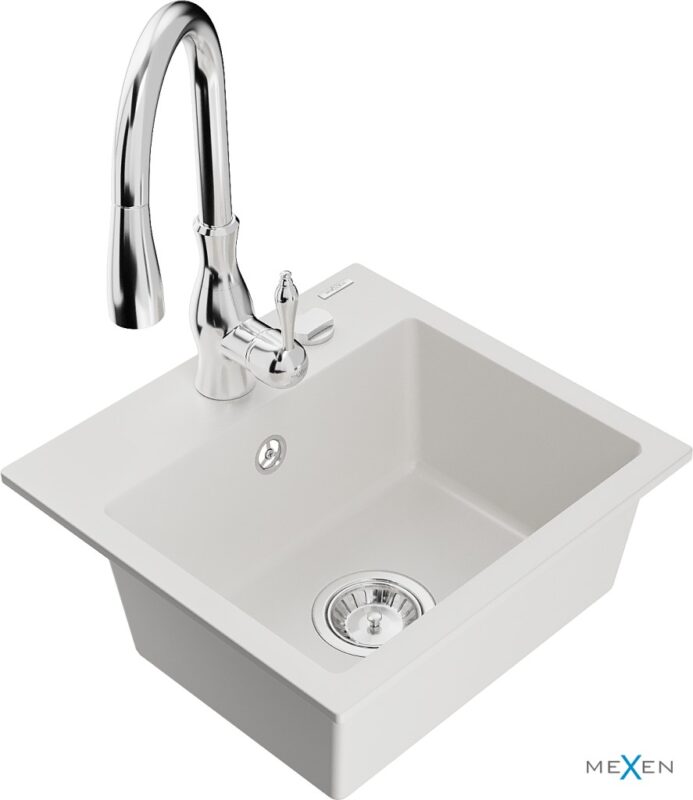 MEXEN/S MEXEN/S – Milo granitový drez 1-miska vrátane batérie Savita, biela 6505-20-672601-00