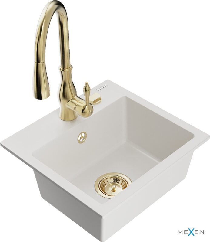 MEXEN/S MEXEN/S – Milo granitový drez 1-miska vrátane batérie Savita, biela 6505-20-672601-50