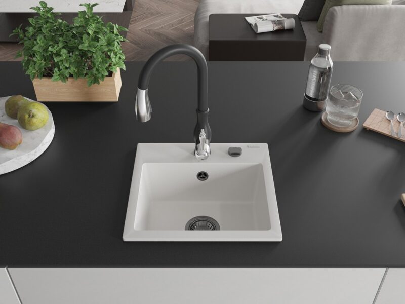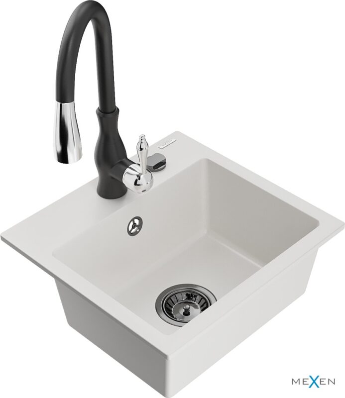MEXEN/S MEXEN/S – Milo granitový drez 1-miska vrátane batérie Savita, biela 6505-20-672601-70