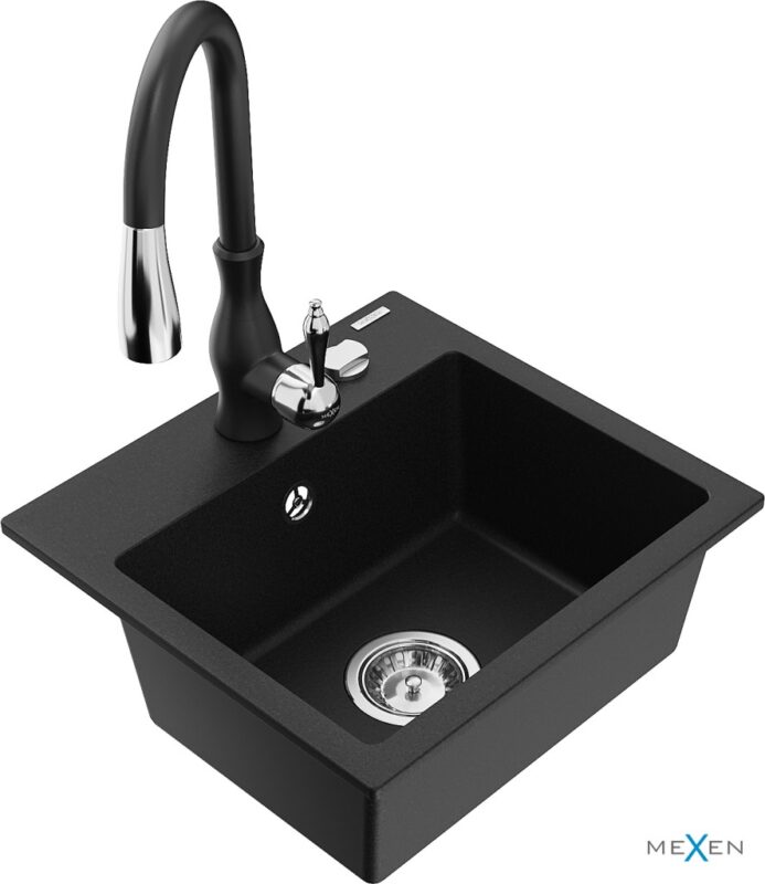 MEXEN/S MEXEN/S – Milo granitový drez 1-miska vrátane batérie Savita, čierna 6505-77-672601-70