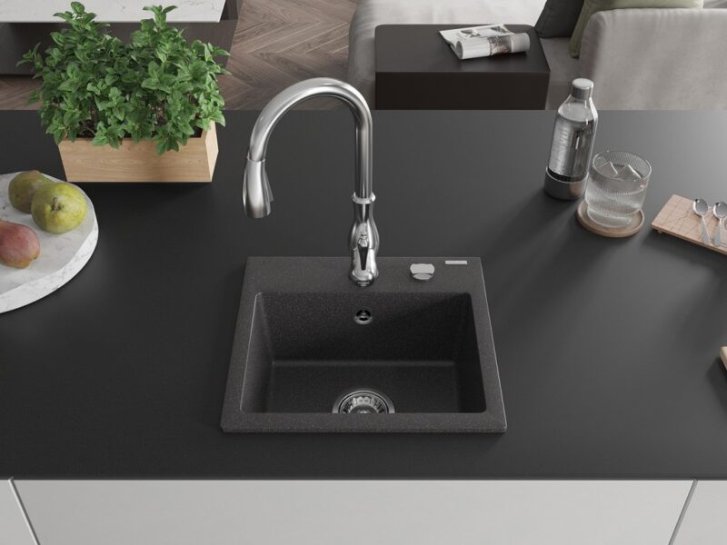 Technické dáta: drez: Rozmer: 435x410x171mm Hĺbka komory: 161 mm Rozmery komory: 375×280 mm Priemer odtoku: ø90 mm Typ: 1-komorový Typ: Zapustené do pracovnej dosky Farba: Škvrnitá čierna Povrchová úprava sifónu: Chrome Materiál: žula (80% žulové kamenivo, 20% živice) Prepadový otvor: Áno Otvory: (batérie, automatické) 2 Vysoká odolnosť proti poškriabaniu a zmene farby Odolnosť proti tepelným šokom Ľahko čistiteľný povrch Jeden dodatočný vyfrézovaný otvor na samodierovanie ø35 kuchynská batéria: Materiál: mosadz Farba: Chrome Hlava: Keramická Prevzdušňovač: Áno Typ: Jedna páka Výška batérie: 410 mm Rozsah výtoku: 231 mm(GT) Ean: 5905315033758