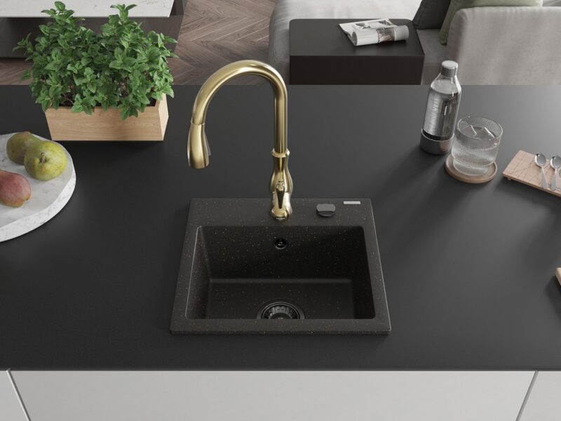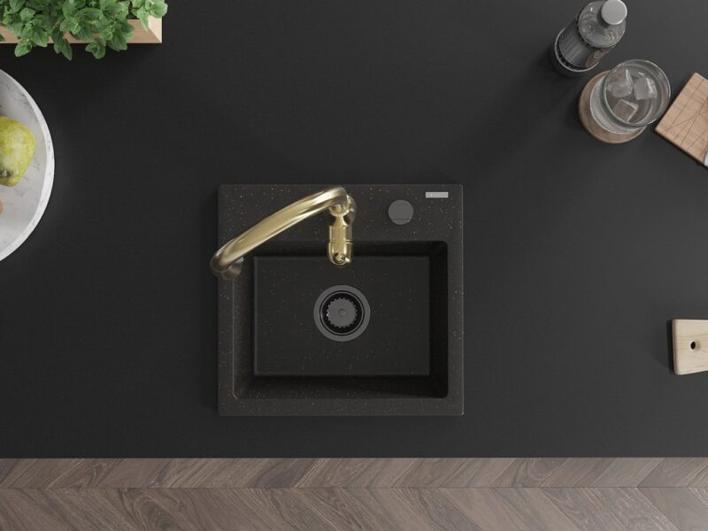MEXEN/S MEXEN/S – Milo granitový drez 1-miska vrátane batérie Savita, čierna/zlatá metali 6505-75-672601-50-B