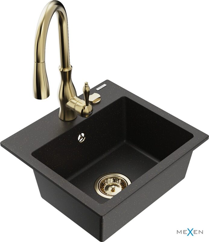 MEXEN/S MEXEN/S – Milo granitový drez 1-miska vrátane batérie Savita, čierna/zlatá metali 6505-75-672601-50