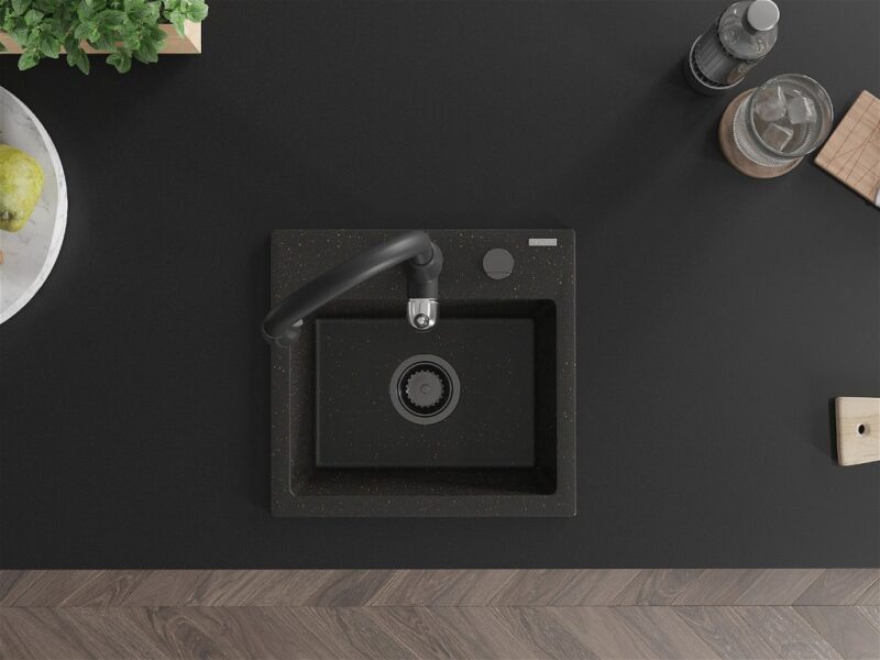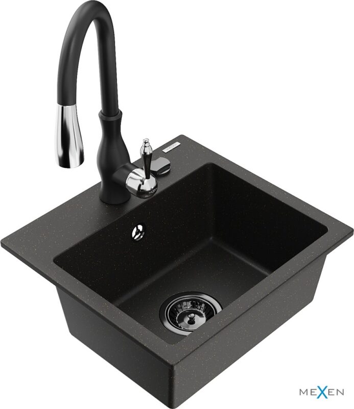 MEXEN/S MEXEN/S – Milo granitový drez 1-miska vrátane batérie Savita, čierna/zlatá metali 6505-75-672601-70-B