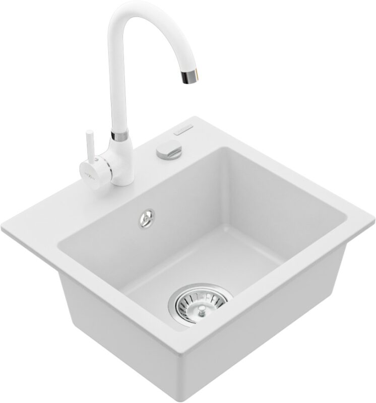 MEXEN/S MEXEN/S – Milo granitový drez 1-miska vrátane batérie Telma, biela 6505-20-670200-20