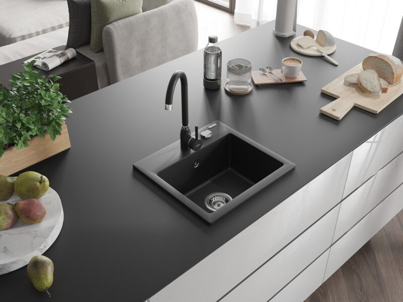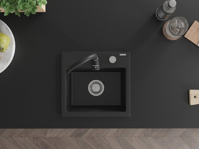 MEXEN/S MEXEN/S – Milo granitový drez 1-miska vrátane batérie Telma, čierna 6505-77-670200-70